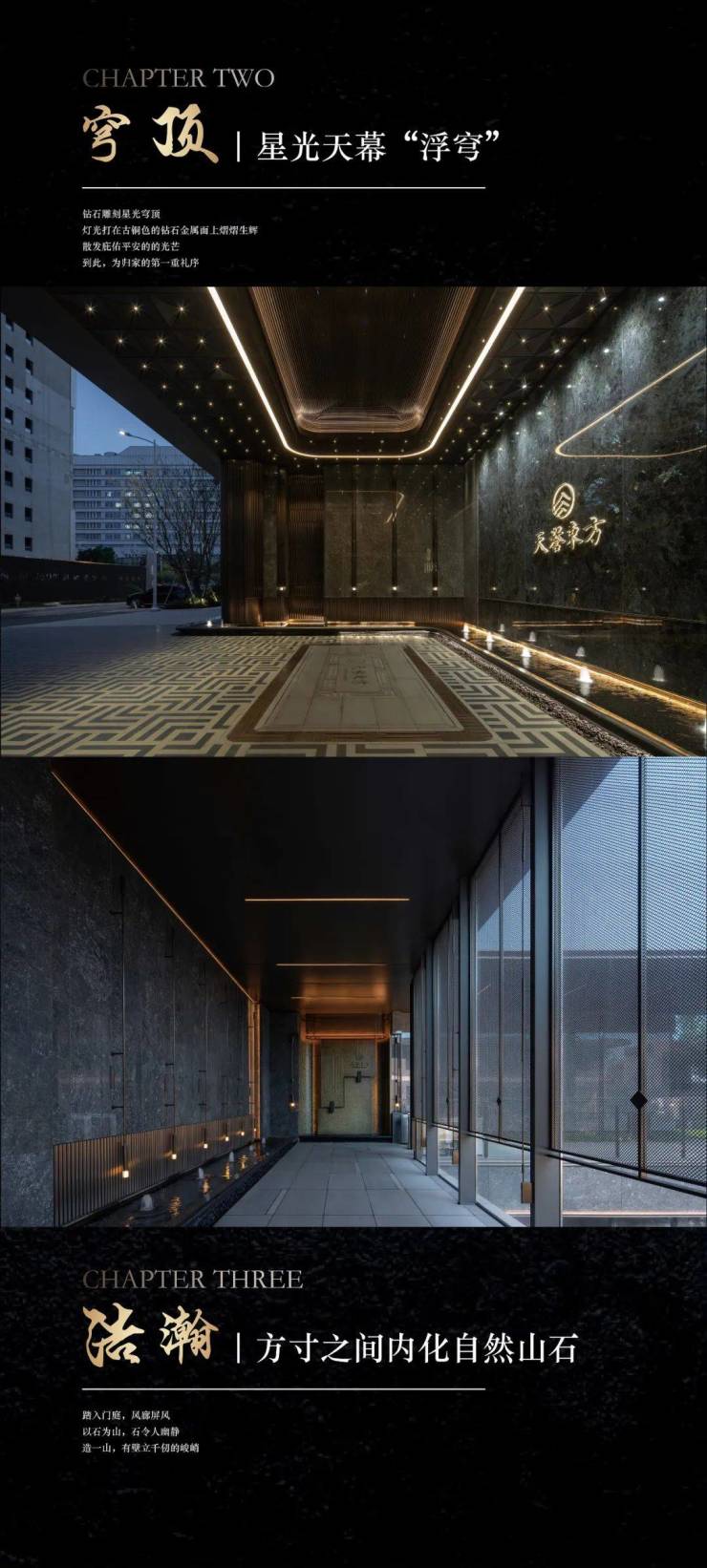 山水入画营造下沉式中央庭院,约12米飞流星瀑,臻选蓝翡翠奢石打造银河水境,百年丛生乌桕封藏四季风景,邀山水融自然,一方东方禅意画境