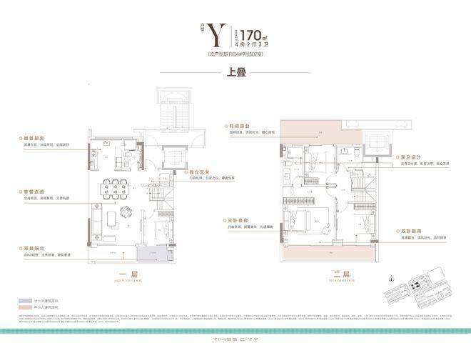 170m²上叠,南向双阳台+南北双露台: