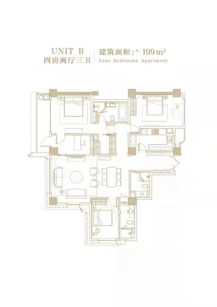 双向采光设计,次卧采用套房设计,更周全居者私密;