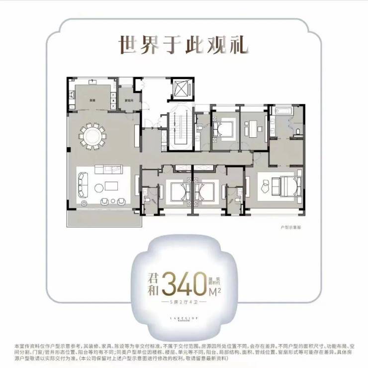 340㎡ 5房4卫:6开间朝南,客厅开间7.8米,主卧开间6.4米,总价2142万(单价62681元/㎡)25。