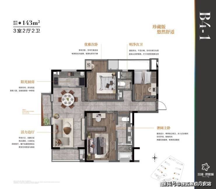 123-143㎡三室两厅两卫(总价约155-195万)。1