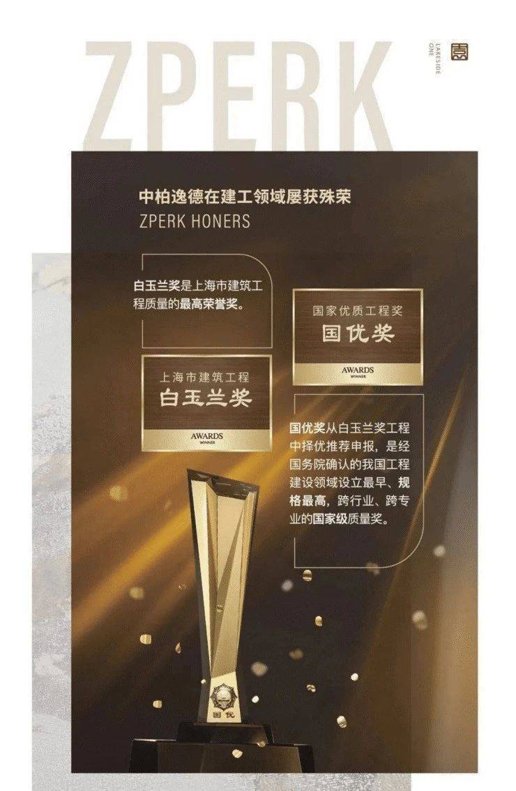中柏逸德多年来建造的项目,以卓越的品质屡获殊荣,包括上海市建筑工程质量最高荣誉奖——白玉兰奖、国家优质工程奖——国优奖,产品品质备受市场追捧。