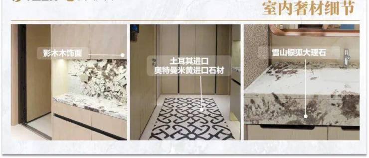 项目不惜成本,严选十余种珍贵奢石与臻质材料,外立面、门庭、公区、车库、室内等多重空间,皆以奢材精心雕琢。