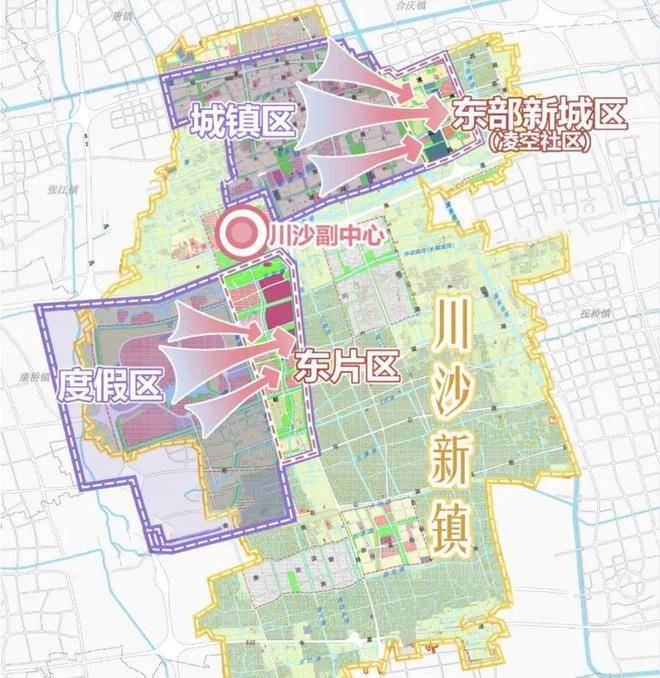 放眼浦东中部地区,川沙新镇将充分承接国际旅游度假区、张江、临空经济等功能溢出,与周边各板块协同发展。在具体功能业态上注重差异性,弥补周边地区功能短板,聚焦国际旅游、会议会展、总部办公(会议会展、旅游管理以及酒店等企业总部)、生态休闲功能。