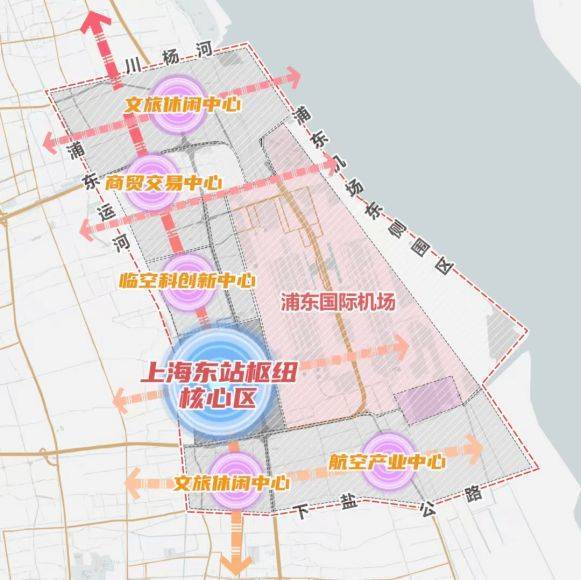 东方枢纽的建设也已经把川沙东部新城区纳入了开发范围。根据十四五规划,东方枢纽由浦东国际机场和铁路上海东站组成,为川杨河、浦东国际机场东侧围区、下盐公路、浦东运河围合的区域,总投资1500亿元,规划面积达155平方公里,我们项目正在其范围中。