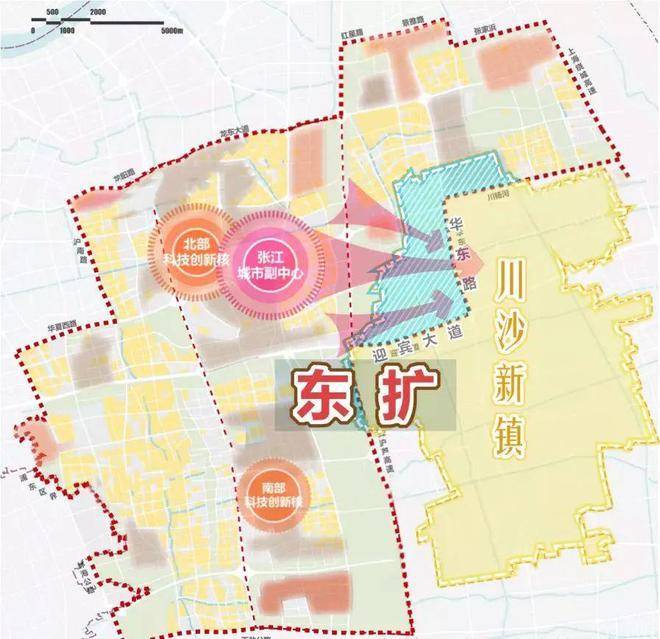 在《张江科学城“十四五”规划》中,张江科学城已经向东扩区到川沙镇域范围内,直接纳入了整个华东路以西的川沙城镇。这对川沙来讲是个极其重大的利好。张江东扩未来将对川沙的城市界面、配套设施、人口能级、地段能级等等,形成极大的改善,唐镇就是最好的例子。
