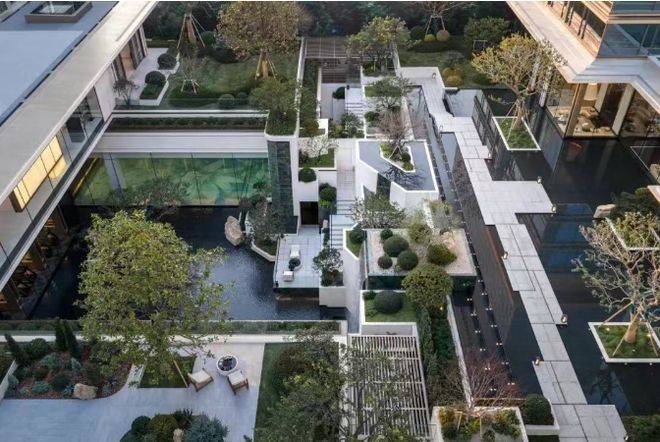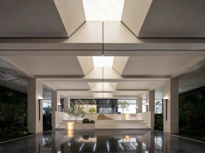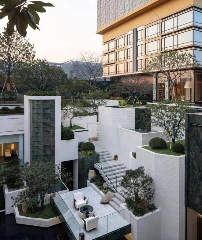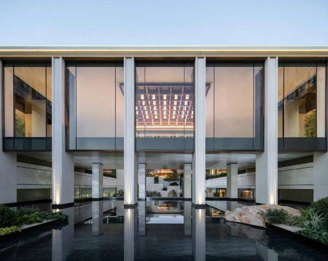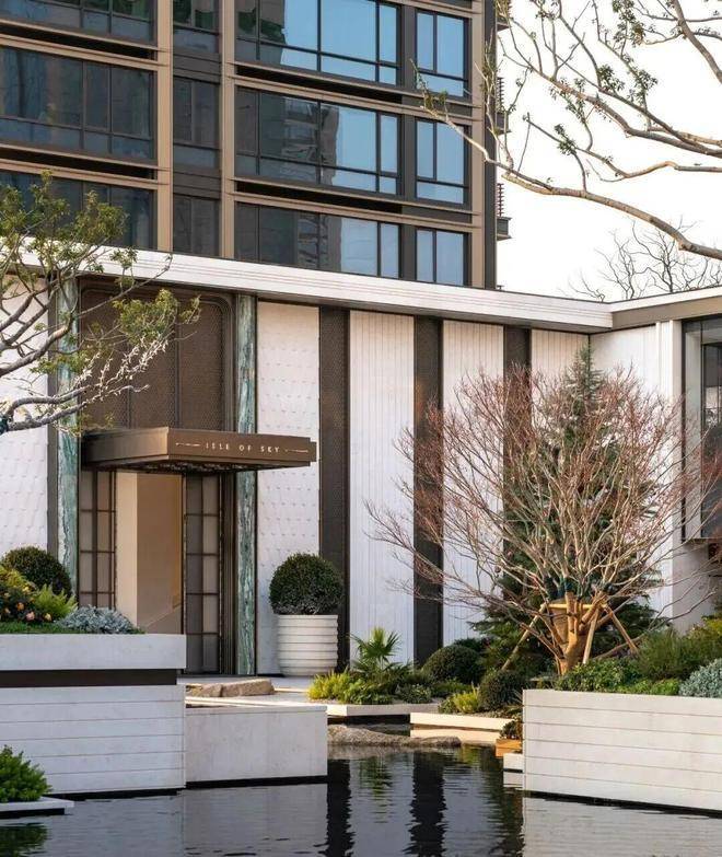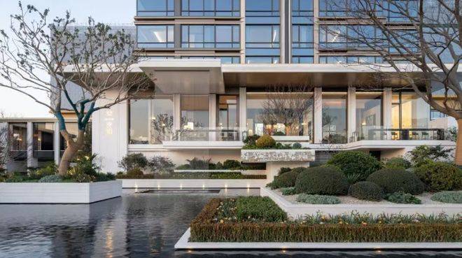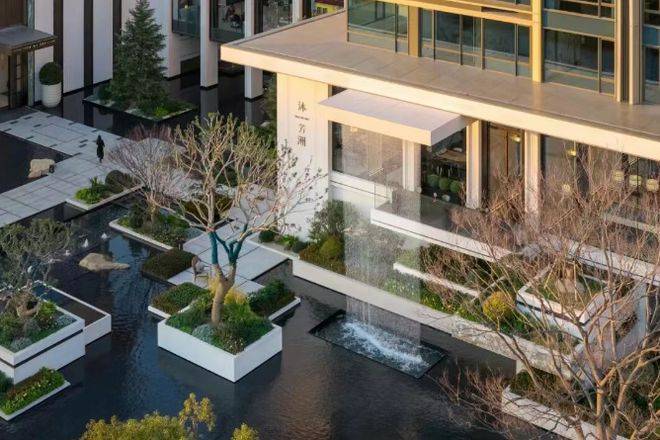 沐芳洲以「浮岛美学」破局创新,通过 3.8 米整体抬高、6 米首层架空的设计,打造出悬浮于城市界面之上的高阶居住场域。