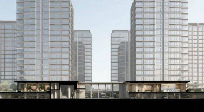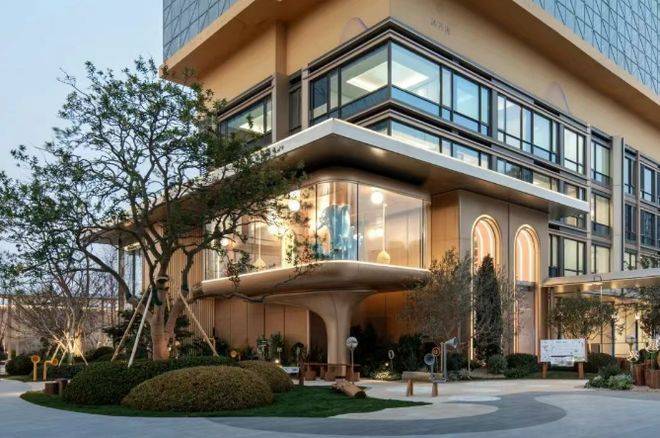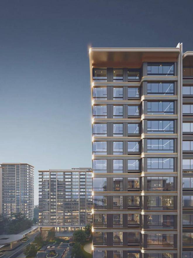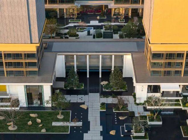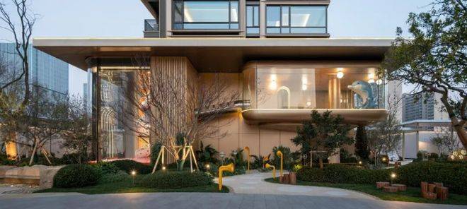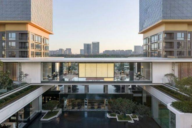 项目位于浙江省杭州市钱塘区元成板块,紧邻金沙湖CBD,依据住宅新规,被打造为典型的抬板社区。设计以“浮岛美学”破题,将居住平台整体抬升,营造开阔舒展的超级前场,为居者带来更具仪式感的归家体验。
