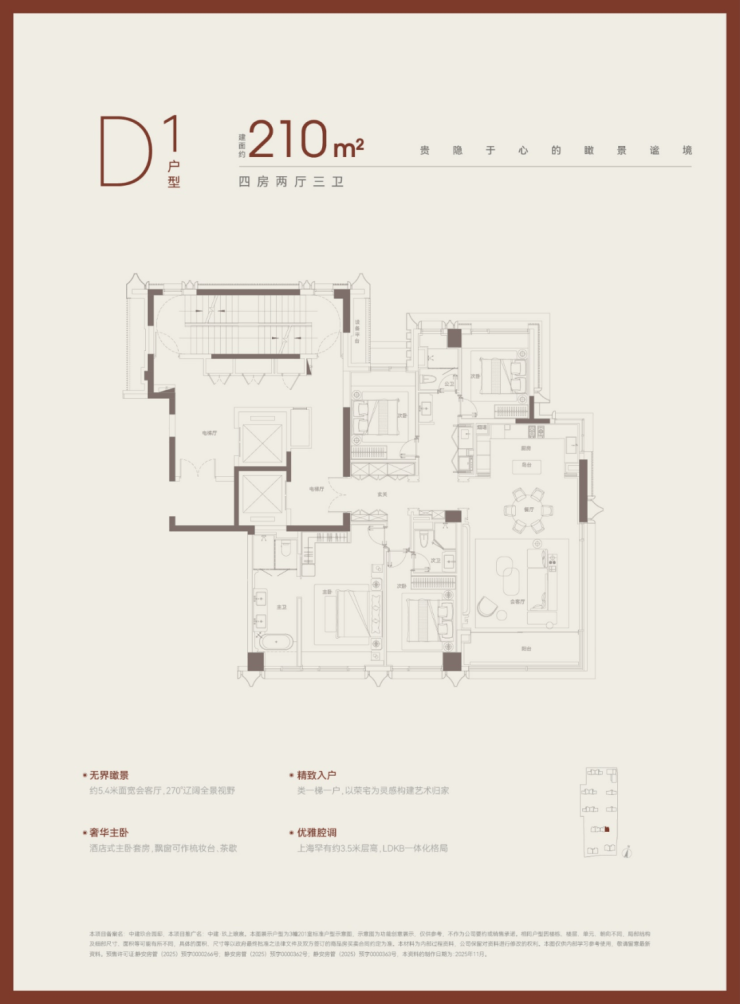 整体双套房设计、全明通透、飞机户型、X空间……所有你能想到的顶豪配置,它都有。而且,它做得更精致。
