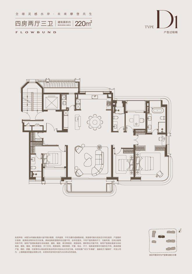 南向双主套均配备独立卫浴与全景飘窗,主卧卫浴更是采用“双台盆+浴缸+淋浴区”的三段式布局,媲美五星级酒店;