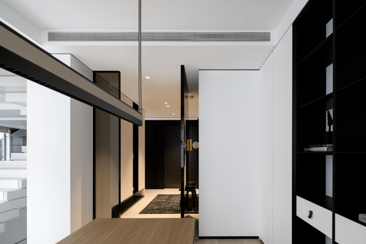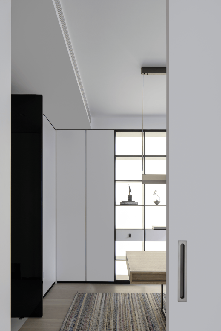 整个空间以静、雅、柔传达着家的精气神儿,黑白的交错,棱角的柔和,都是家的本色,都是极简的象征。