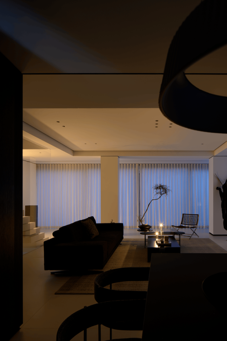 光线的晕染不仅贯通了空间,更打通了人和家之间的联系通道,让居住者能沉浸于家中,享受当下的美好。