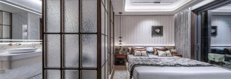 创意展示空间处处展现了海派风韵,例如更耗时更费钱的带弧度的半圆形吊顶!以及厨房的三轨道移门的水波纹玻璃,更具奢华腔调!