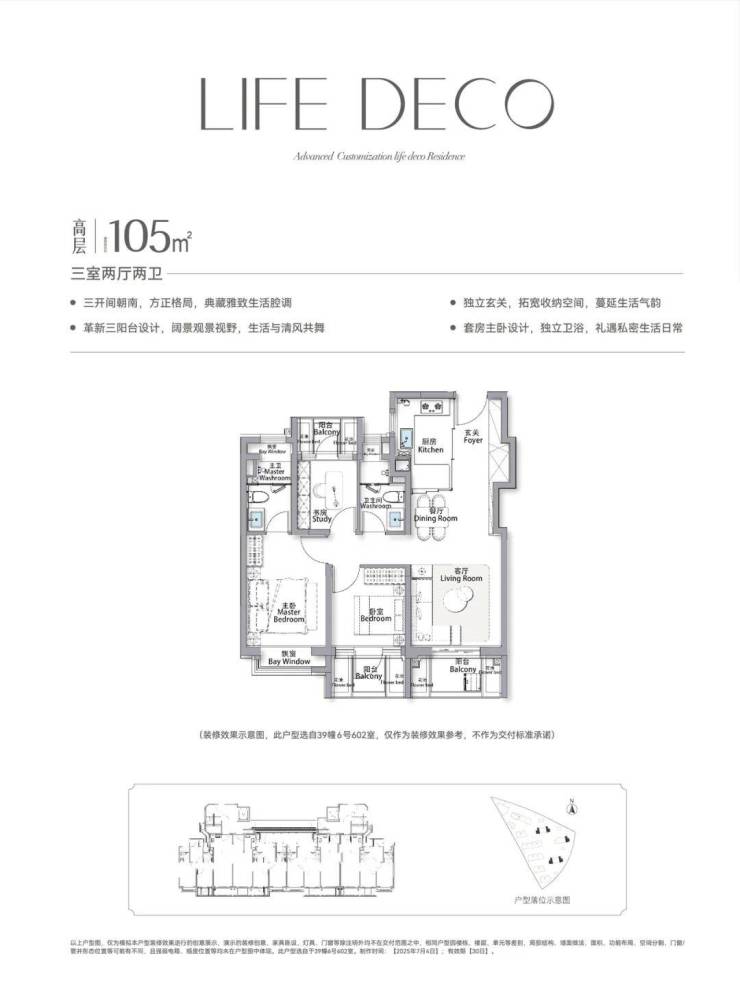 2、延伸空间拉满!主卧套房飘窗+步入式衣帽间+独立卫浴拥有2个飘窗,尊崇感与实用性拉满!三阳台+花池+4飘窗结构,有效延伸空间,实际使用空间更奢阔!