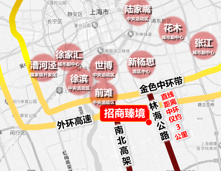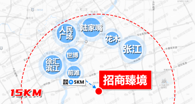 「招商臻境丨源上」项目直线距离陆家嘴、徐汇滨江等产业高地直线距离均在12公里以内,直线距离张江城市副中心仅约10公里,直线距离浦东新贵前滩中央活动区仅约5公里!堪称陆家嘴、前滩、世博、徐汇滨江以及张江都市菁英人群的超级性价比之选!