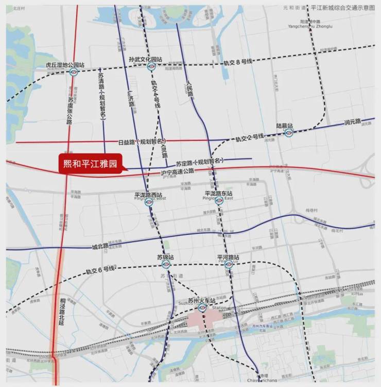 交通方面:平江新城已经有4条轨交:2、4号线,6、8号线(在建),除此之外,苏州火车站、中环高架、高速等距离项目也就一两个红绿灯,不管去哪都非常方便。