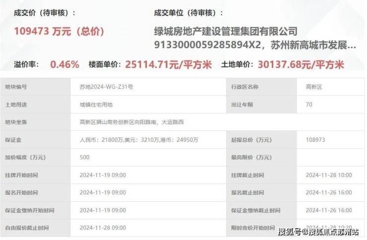 澜庭壹号院,位于新区狮山商务创新区向阳路南,容积率1.2,是去年11月份,苏高新&绿城管理总价10.9亿竞得,成交楼面价25115元/㎡,溢价率0.46%。