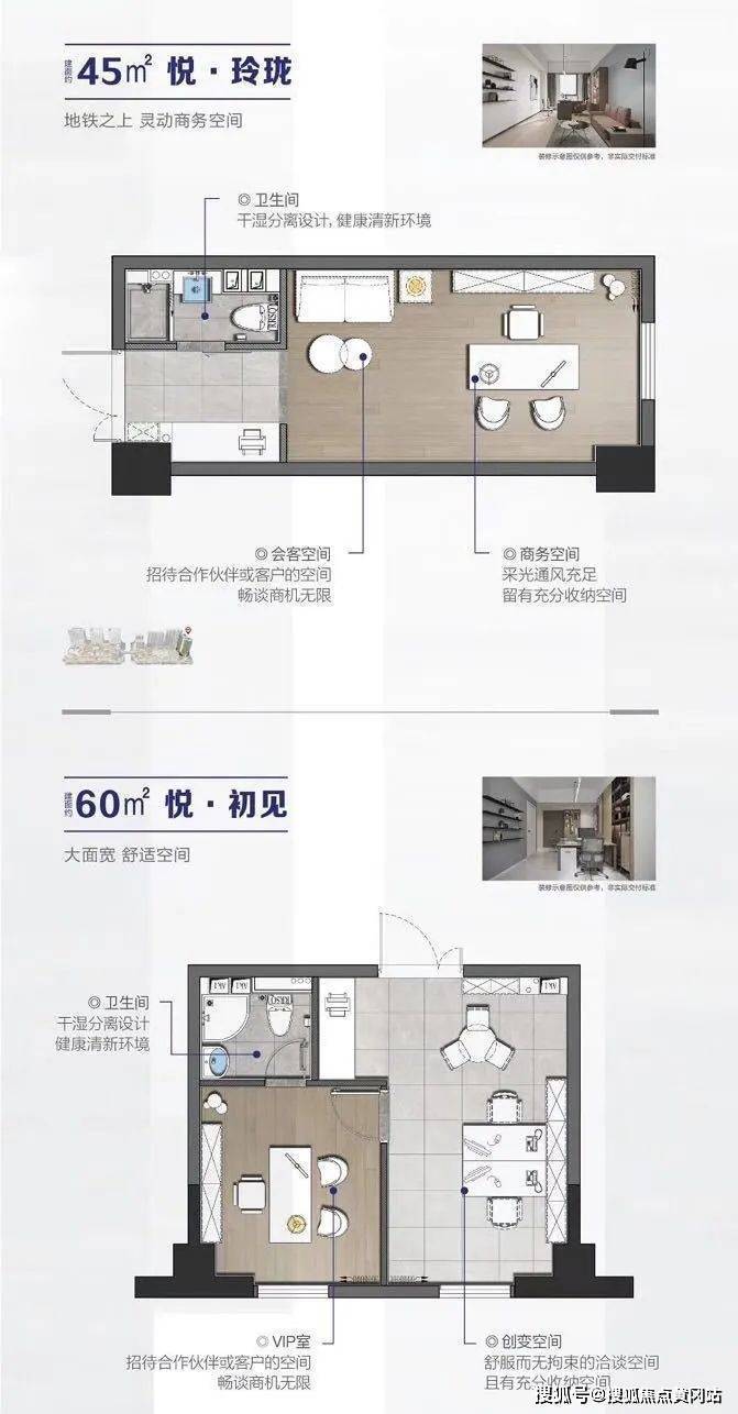 建面约45-60㎡的创变空间