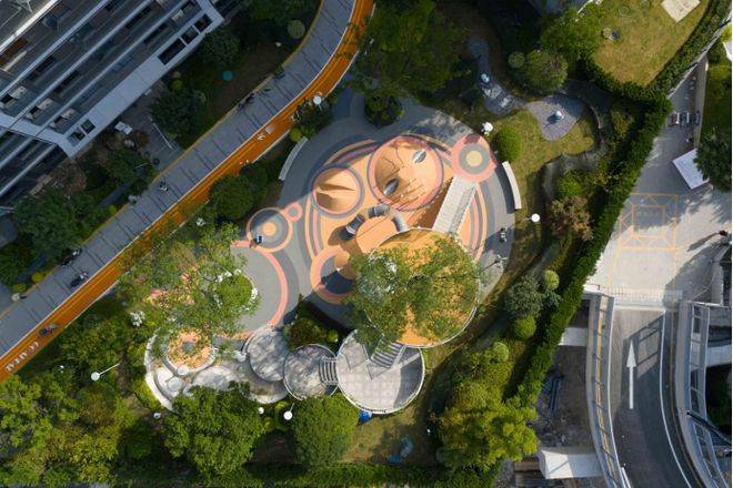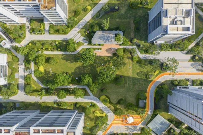 乌桕,娜塔莉,银杏等树木点缀其间,错落排布打造立体景观层次,俯瞰远看皆有不同的视觉美感,绿意盎然的园景如同踏进了“莫奈花园”,营造归家仪式感的同时,还为社区增添了灵动的休憩空间。