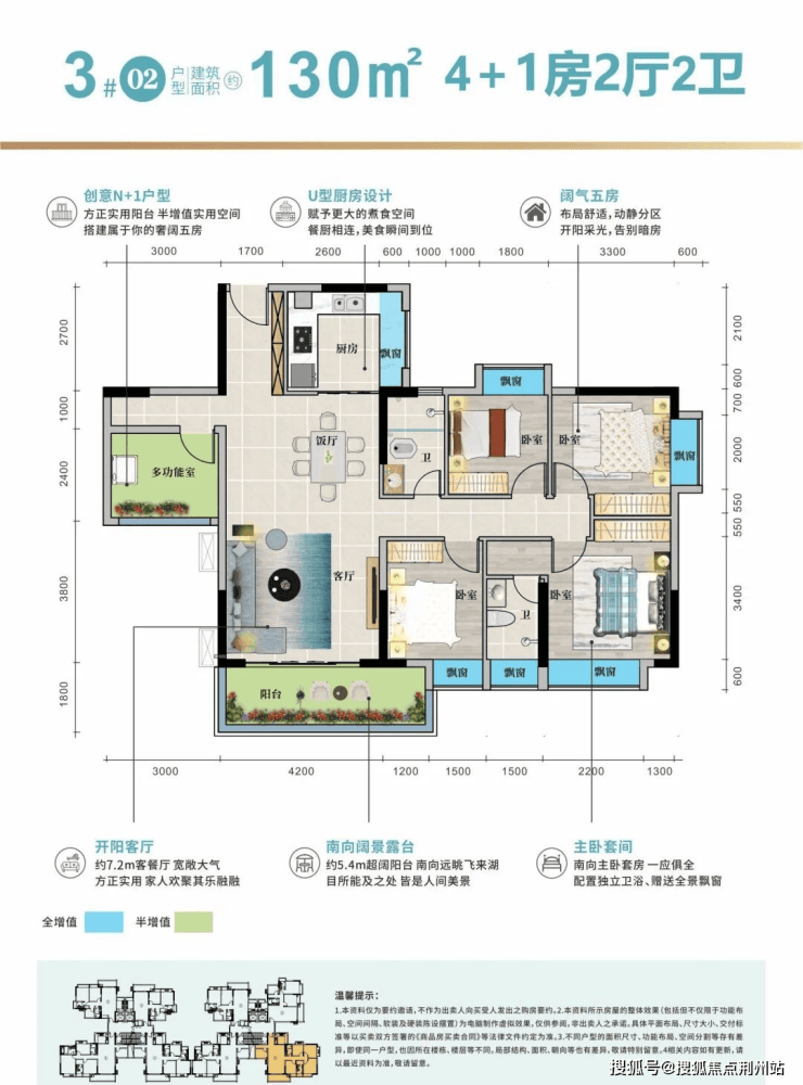 3#02户型:约130㎡4+1房两厅两卫(三代同堂必选)