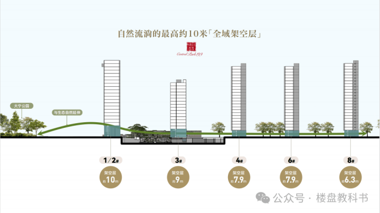 向内,项目更是以令人惊叹的魄力,打造了约6.3-10米超高层级全域架空设计。