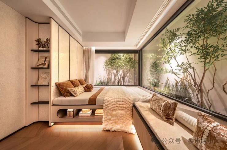 公区配置方面,约3000㎡高端会所涵盖恒温泳池、健身房、瑜伽室、私宴区等功能。更难得的是,项目创新性地将架空层打造为「泛会所」,与园林景观无缝融合,设置阅读书吧、四点半学堂等全龄活动空间。