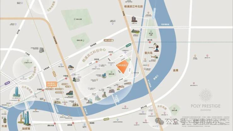 交通网络已然成熟:项目紧邻地铁12号线爱国路站(距离约600米),规划中的24号线也将在复兴岛设站,形成「双轨交汇」的便捷出行体系。自驾方面,杨浦大桥、军工路隧道等「一桥五隧」架构,让浦东浦西无缝连接。
