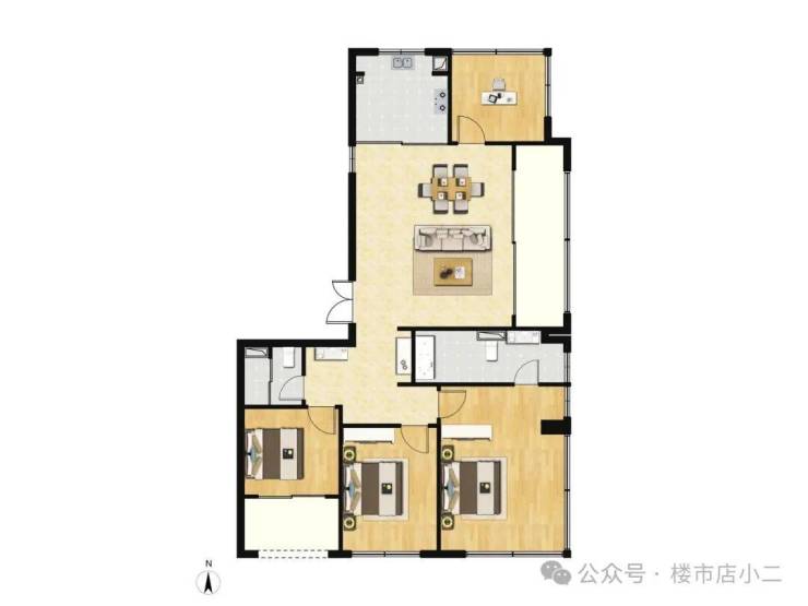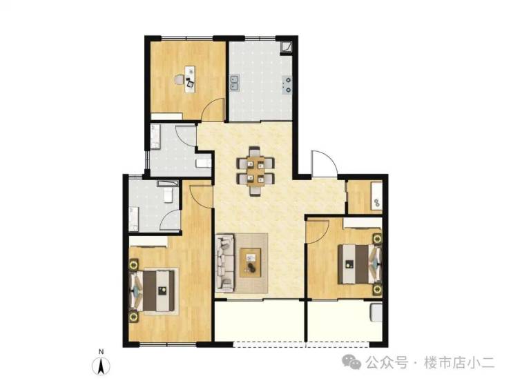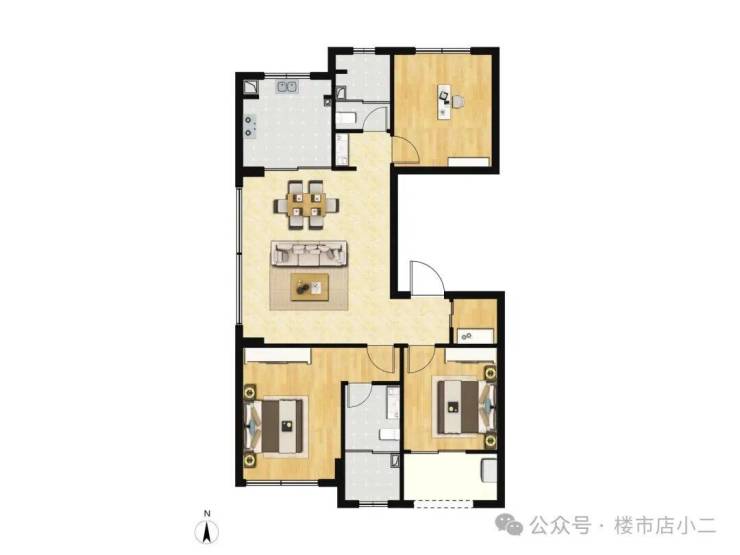 建面约119㎡三房采用经典的飞机户型格局,三开间朝南并配置双阳台。北次卧的灵动飘窗大幅拓宽采光面与景观视野。独立入户私厅设计,既提升私密性又增加实际使用面积。