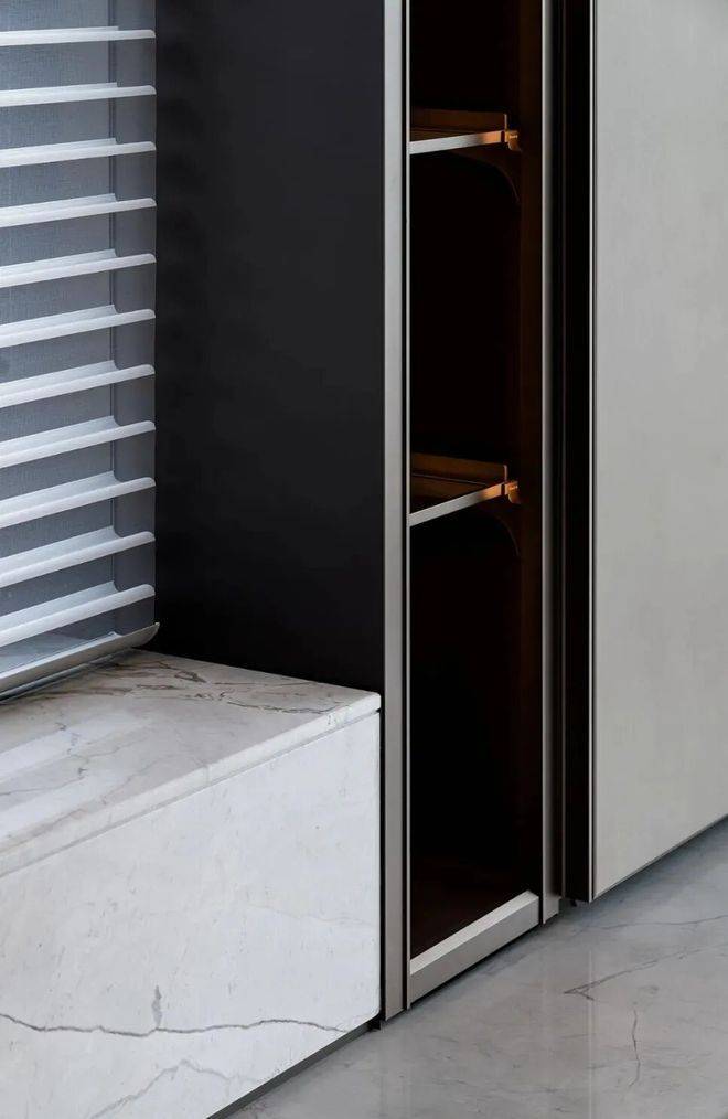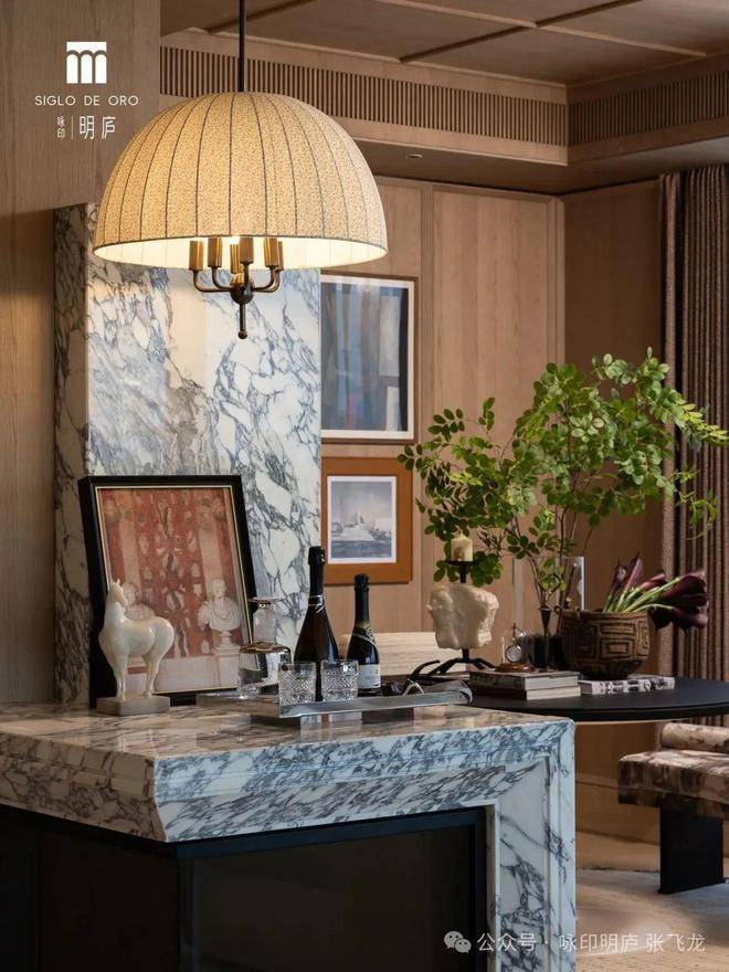 特邀意大利设计师Andrea Bonini、CCD(香港郑中设计事务所),以大平层思维匠造意式人本大宅,将层高抬升至约3.15-3.6米尺度,通过270°环幕视野最大程度向运河打开,融入意式美学品位,尊重客户定制化需求。