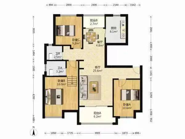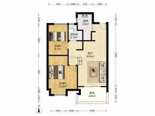 刚需房就要考虑三代人同住或者一家四口居住对房间数量的要求,这样考虑的话,房子最少应该是三居室,那89㎡的紧凑型小三房就更合适。