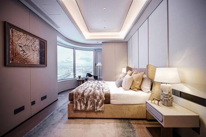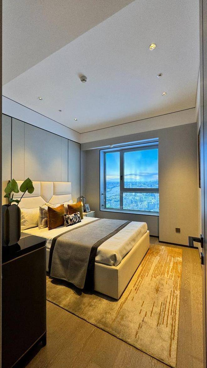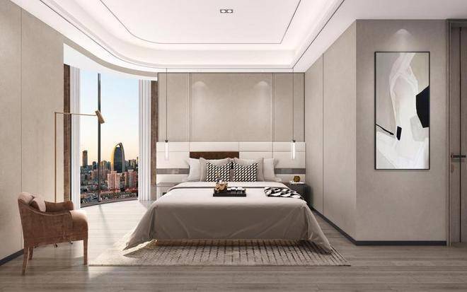 媲美星级酒店的转角套房主卧,既保证了私密性又不失奢华感。更有IMAX级宽景明窗,拥享整座城市景观。