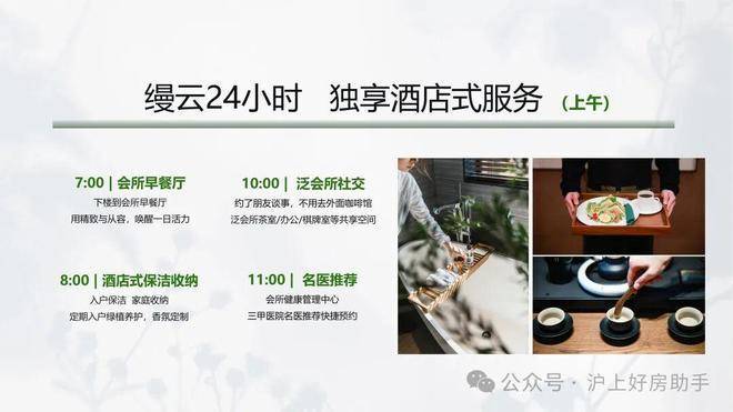在深入研究全球各地的顶级寓所与奢华酒店之后,缦系无边际服务体系应运而生,包含280余项细则,建立在时间、空间、私属三个维度之上。除了无边际基础服务之外,缦云上海还为业主增设了「至善无痕」的私属增值服务,6大类27项内容,真正实现了酒店管家式服务体系与标准在住宅社区的落地。包括每年一次专属晚宴和纪念日活动策划服务,每周2次入户保洁服务,每年1次家庭收纳,每年10天宠物托管寄养服务,儿童校车点接送、43项免费日常维修项目,健康咨询类名医名院推荐服务等等,真正做到前置化、丰富化、创新化客户的生活需求。