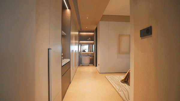 Starting from the entrance hall, your line of sight can penetrate the living room and reach the Huangpu River, turning the distant scenery of the river into a flowing art piece within the room.