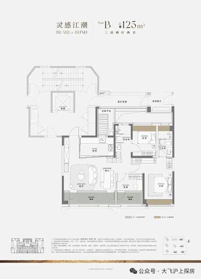 125㎡户型:首创6米南向横厅,边户可拓展至9米面宽,配独立岛台及20m³收纳系统。