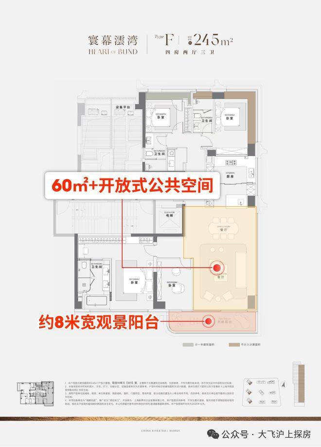 Yunqi Bund is a panoramic preview by Sunac Land of future life along the Bund. And the "Jiangwan Living Room" layout of approximately 245 square meters is the "highlight" of this preview.