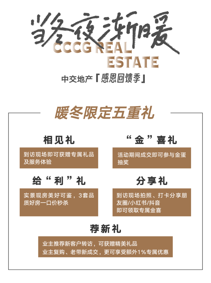 让冬夜渐暖,源自责任央企的信心,更是对中交·湖畔春晓的最强肯定。当曾经看似理想化的效果图,因高标准的产品力化为实景,中交地产的使命并未终结,而将持续地在生活的每个时刻,产生为爱升温的化学反应。