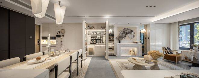 玄关S墙设计,同样包含MAX巨量收纳;创新性采用了钢琴键收纳,600万级的刚需项目中能享受大几千万的豪宅配置;