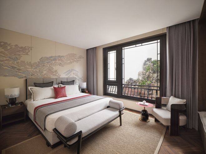 西子湖四季酒店主创宋淑华操刀园林,采用青砖空斗墙、铜质门环等南宋官式元素,精装标准达2万元/㎡(含ARMANI橱柜、瑞士V-ZUG智能家电)。