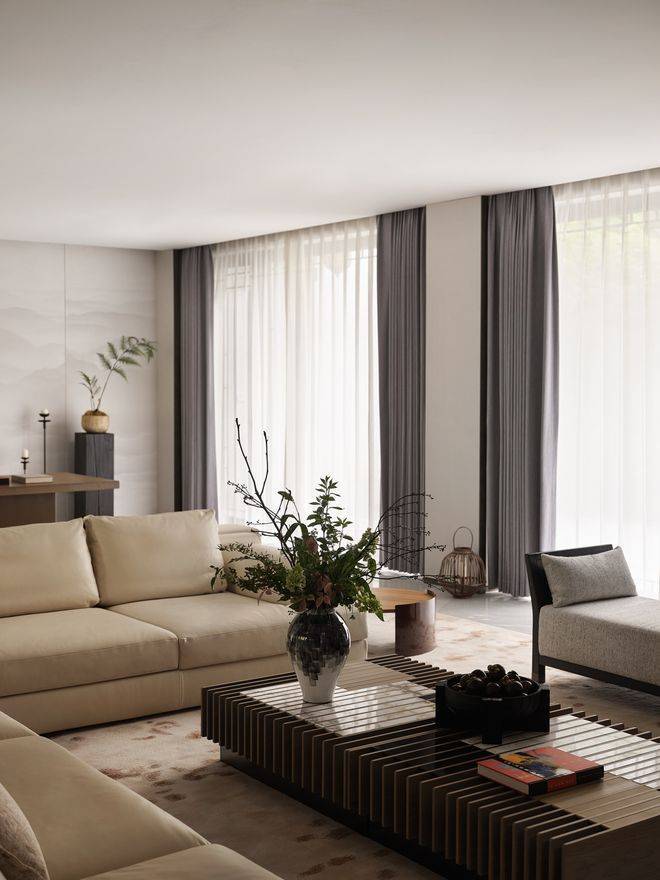 0.6超低容积率打造31席精装中式合院,600-1835㎡户型标配三层挑高天光中庭、直升机停机坪接口及60-300㎡私家庭院,部分户型含双首层会客厅。