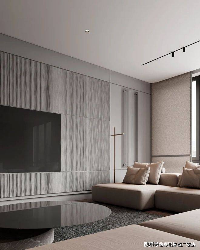 深色的玄关加上深灰色的墙面,让整个空间变得神秘又迷人。暗黄色的灯光给整个空间带来一丝神秘,客厅的视野完全被落地窗全部打开,整个空间显得通透大气。
