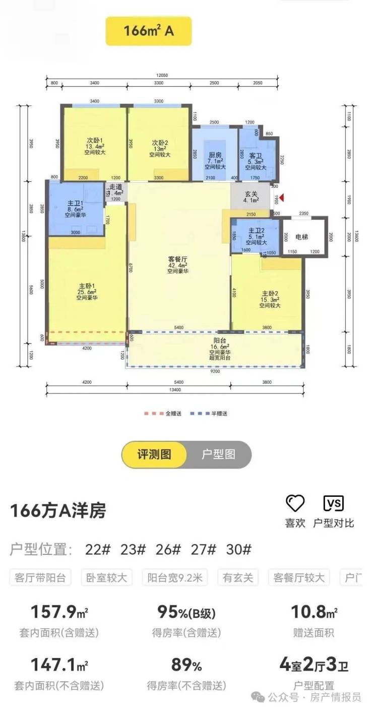 得房率:166㎡含赠送得房率95%,182㎡含赠送得房率93%