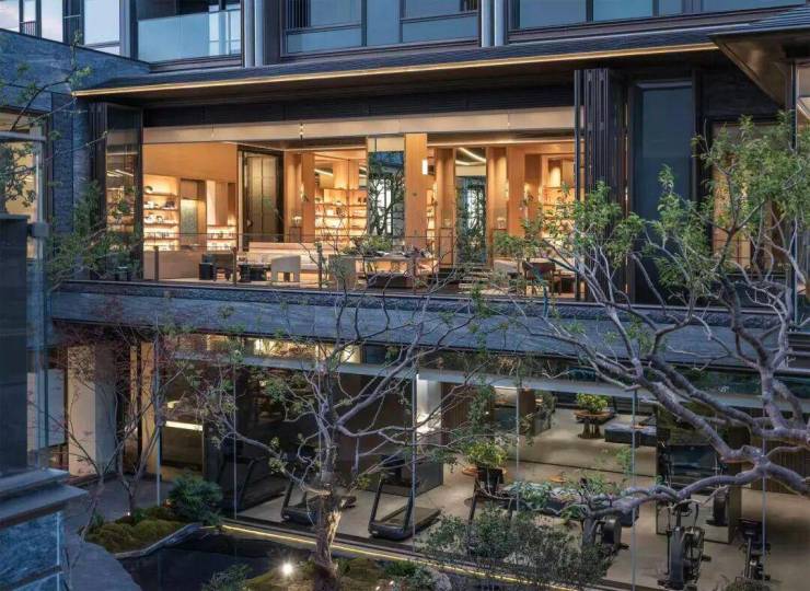 健身房也让我印象深刻。它直面庭院,视野很棒,用的全是顶级品牌“必确”的设备,而且听说绿城特意把每一台跑步机都正对着玻璃中间,不对缝、不歪斜,这对强迫症太友好了。更难得的是,物业费已经包含了场馆使用和公益教练课程,业主能真正用起来,不是摆样子的。