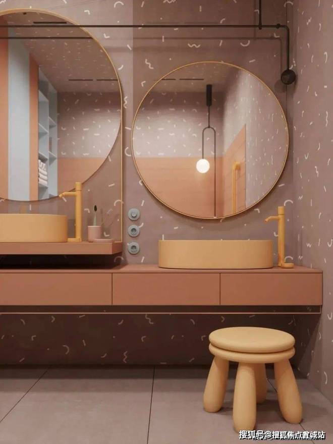 卫生间五光十色,彰显了儿童个性的欢跃、嬉闹,坐凳、摆件、开关,都极具儿时乐趣,让人尽情享受童年的快乐。