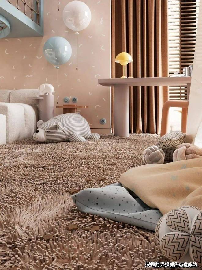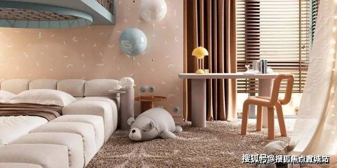 儿童区域则增添了更多的色彩,备显轻松、活力,浅蓝色让人如临海洋,黄色积极活泼有张力,而米色作为主颜色打底,遍布整体空间,来给予温馨、居家的氛围感。