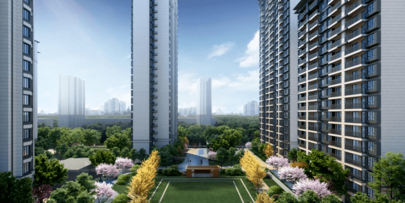 项目占地面积约3.2万方,总建筑面积11万方,容积率2.4,车位配比1:1.18,绿化率37%。项目由3栋18层、3栋26层、1栋27层的住宅组成,共 844 套房源,楼栋间较大间距约94米。