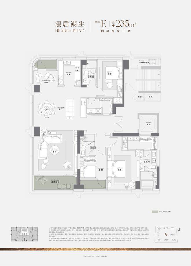项目185㎡户型作为滨江园境主座,堪称上海滨江之上的园境栖居典范。