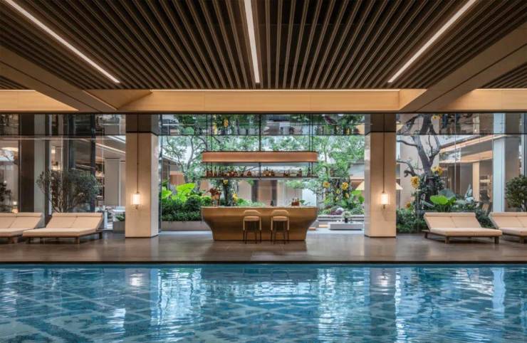 金茂棠前打造了建面约1600平的高定会所,整个会所配置了私宴厅、自然健身房、无界泳池、整体采用围合式建筑设计,与下沉式庭园四面联通,内外情景交融,开启会所体验全新升级;也是杨行板块第一个会所有泳池的高端住区。