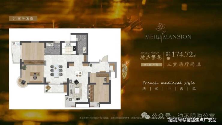 面积:174.72㎡ 三室两厅两卫 01户型
