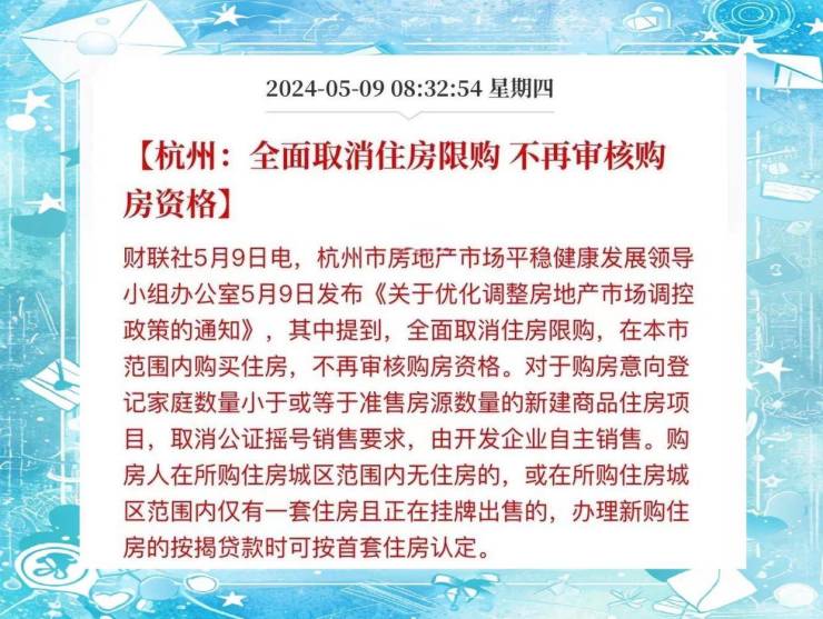 限购政策变化成为近期杭州房地产市场的焦点。2024年5月9日,杭州市正式宣布取消住房限购政策,不再审核购房者的资格。这一举措标志着自即日起,杭州市区域内购买住房将实现全面开放。