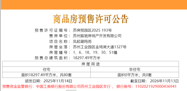 绿城凤起潮鸣,即,苏园土挂(2025)01号地块,位于工业园区东板桥河西、金鸡湖大道南,3月21日,绿城以总价532436万元竞得,成交楼面价40684元/平,溢价率45.3%。